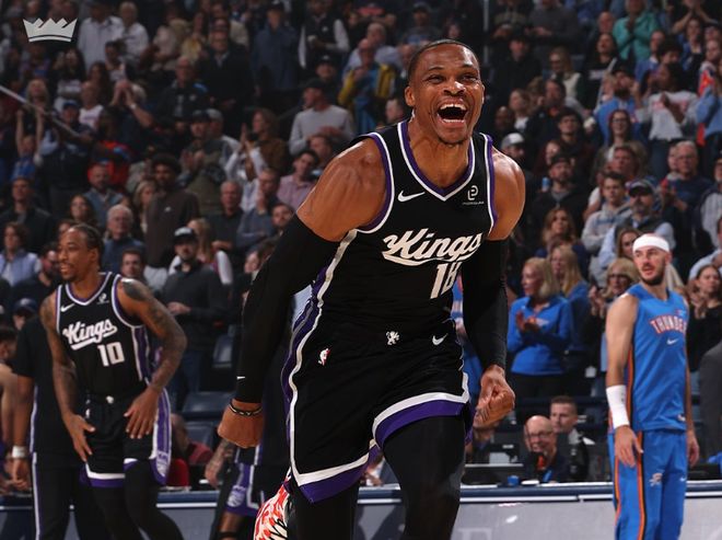 包括勇士的霍福德,当初被认为是勇士休赛期最好的一笔签约,新赛季打打停停,还有负荷管理,但场均4.5分4.5篮板的数据,加上29%+20%的两项命中率,食之无味弃之可惜。简单来说,任何球星都很难挡住岁月的洗礼,强如杜兰特,在火箭也逐渐开始打配角,而且杜兰特还享受其中,毕竟身边的队友都太强了!但有一位球星是个例外:威少。6月上旬,威少跳出了和掘金的球员选项合同,直到新赛季开打前1周,他才接受了国王一份1年360万无保障底薪,四个月的时间无人问津,都认为他该退役了,没想到新赛季开打后,他又变成了超巨。